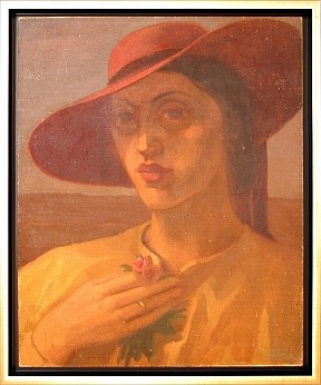 Frau mit rotem Hut, 1937, Öl auf Karton, 49,2 x 39,7 |